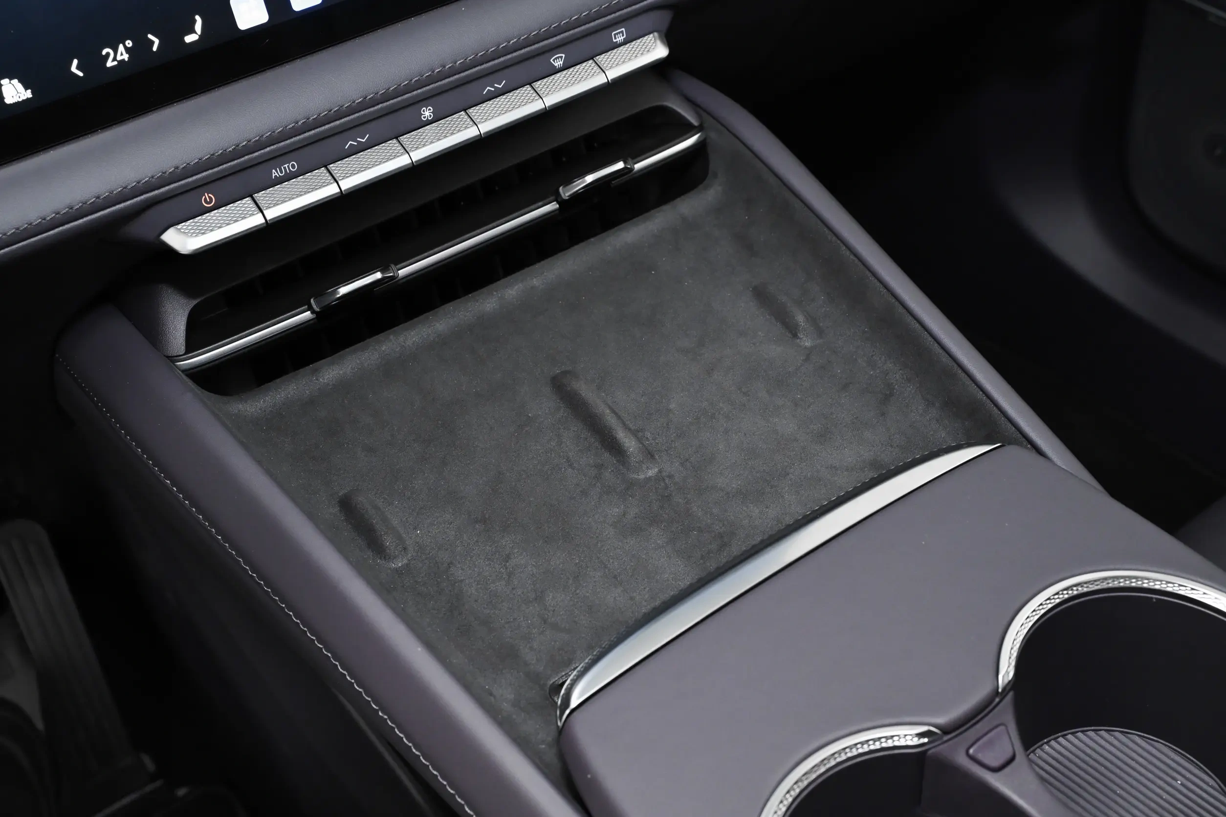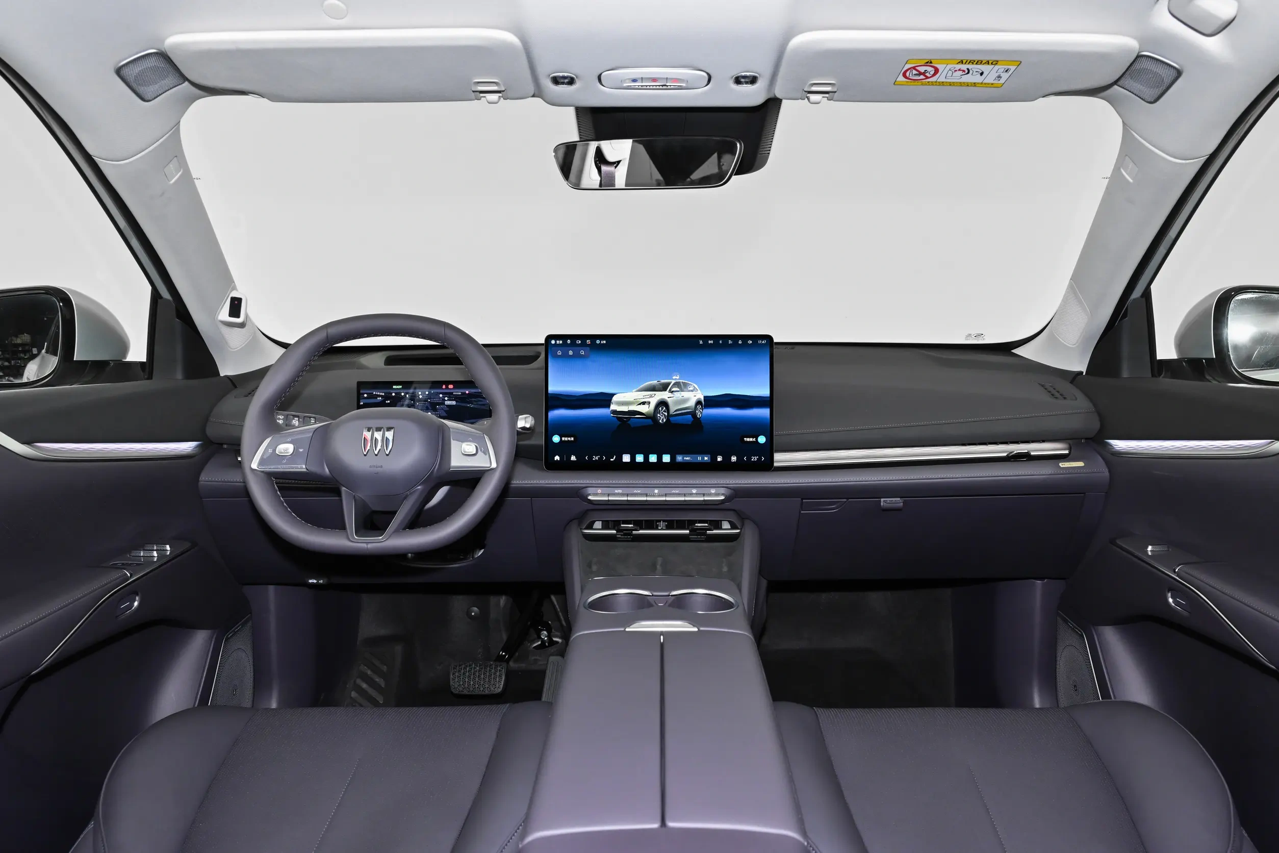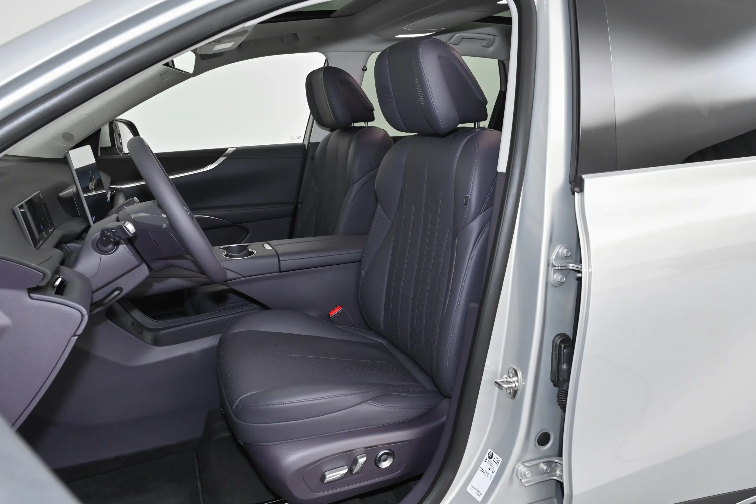 内饰方面,前排座舱布局与至境L7类似,配备悬浮式中控屏、小尺寸液晶仪表、HUD抬头显示、三辐方向盘和电子怀挡,中控台穿插贯穿式银色饰条,中央扶手前端设有一排实体按键。