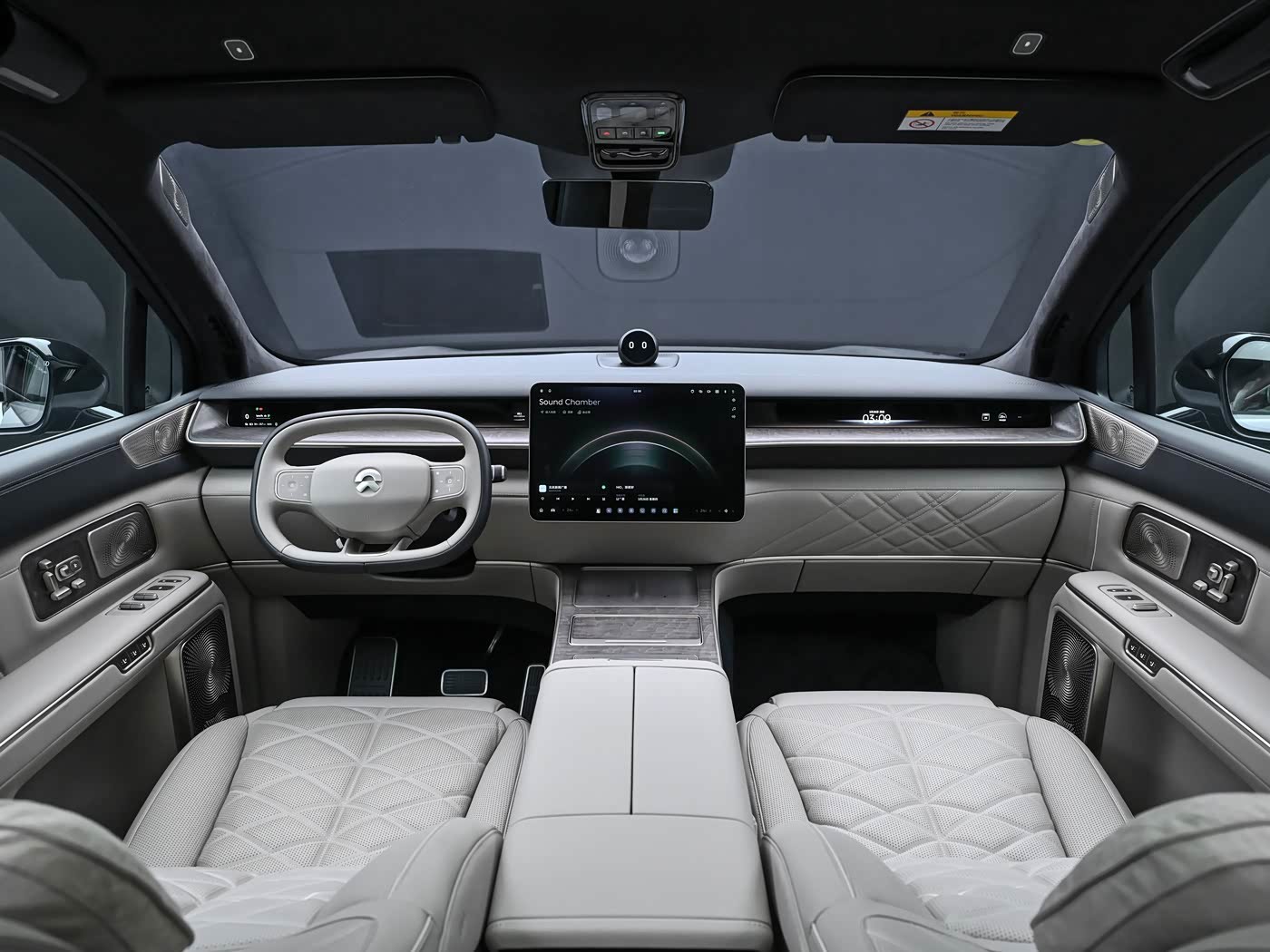 车内大部分设计都围绕行政豪华展开,前排座舱相对克制,配备悬浮式中控屏和48英寸Skyline天际线屏幕,搭配AR-HUD抬头显示和NOMI Mate 3.0机器头。此外,车内大量使用NAPPA真皮与枫影真木等高级材质,地平线特别版还拥有针绣工艺的“靠山揽景”刺绣、真木嵌铝饰板、镶嵌天然宝石的铑金徽章等。